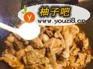 油锅烧至六成熟倒入少许玉米油倒入鸭肉,料酒,生姜大火煸炒几分钟。