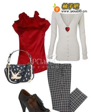 2丝绸小衫+圆头工字皮鞋。鼓起勇气穿上那件丝绸面料做成的小红衫,纯正的红色如同女孩诱人的唇色,还有自己心爱的工字皮鞋。