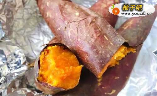 5最后打开看看,红薯已经开始出糖了,取一个能掰开没有硬芯就可以了,软糯香甜的烤红薯就可以出锅了,看着就很有食欲哦。