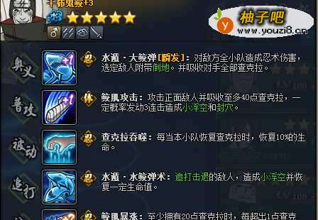 奥义攻击全小队,普攻每次吸收40查克拉,100查克拉时增加240%的攻击和连击。
