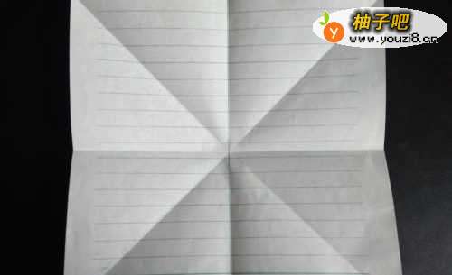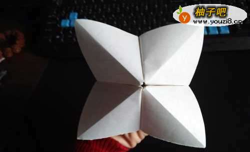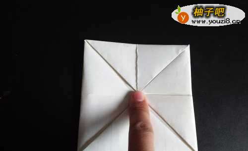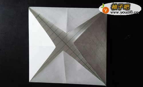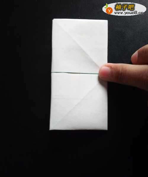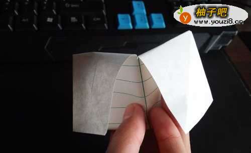 5最后掀起死个小正方形,捏住两边一起往里折。