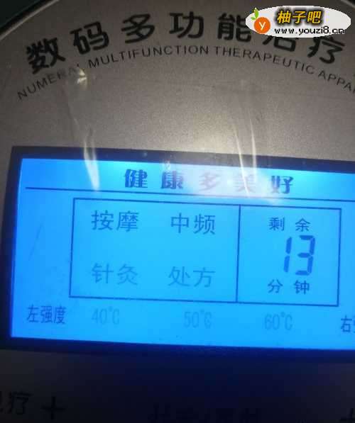 4然后调节电量的大小,调节到患者能忍受的住为止,电量不可过大也不可过小,大了患者承受不了,容易造成伤害,轻了起不到治疗作用,然后调节好治疗温度,一般在50度左右