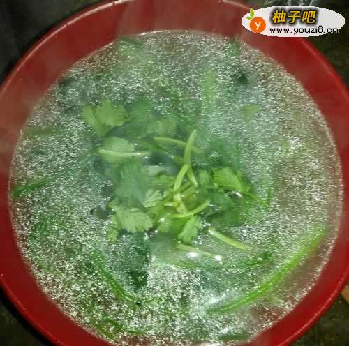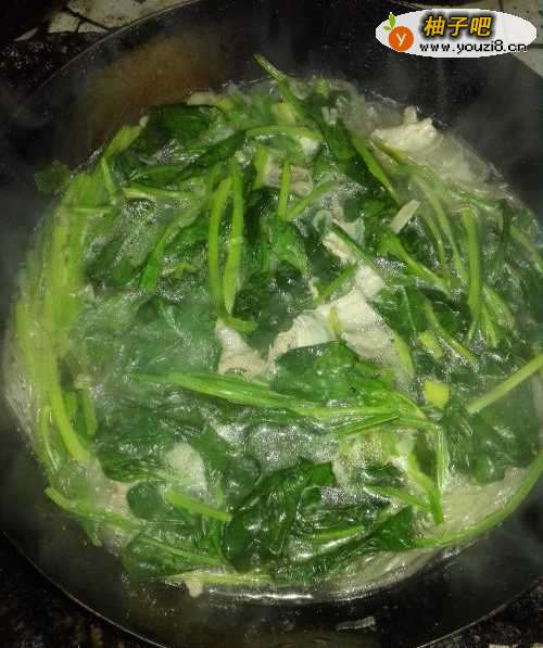 5加菠菜,粉条,烧开加调料!出锅前加香菜!