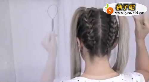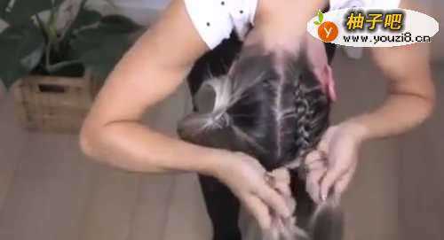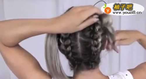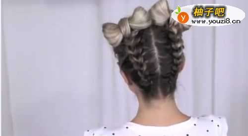 4另外半边头发也依同样方式编制起来。当2编都编好,可以抬起头来了