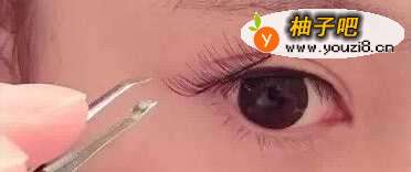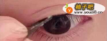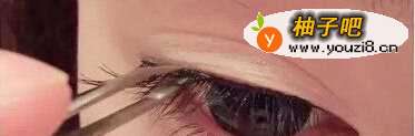 8步骤八:用夹子夹起假睫毛,贴在最靠近自己眼睫毛的地方,只需贴在眼尾,然后再把眉毛画好。