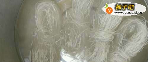 将粉丝浸泡在冷水中备用,至粉丝软化拿出,一般需要半个小时以上;