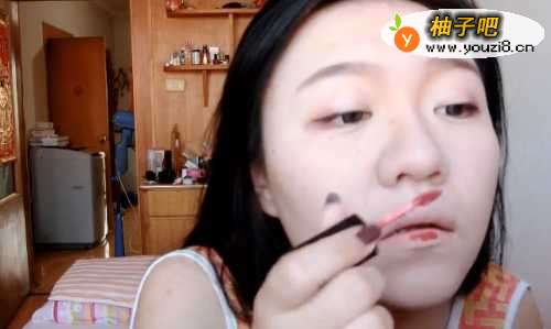 9然后,选好口红色,用口红膏涂在嘴唇上,再用手指将唇膏涂抹开均匀就行。选口红颜色要注意与自己的肤色和装束搭配才好。