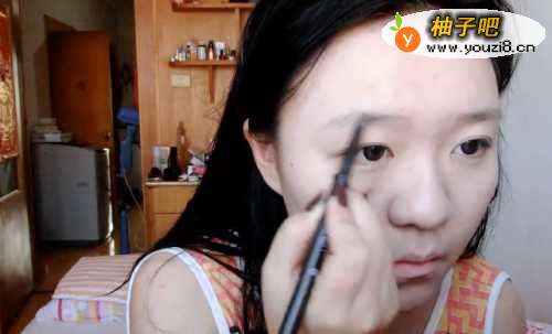 4开始用眉笔画眉,最好按照自己的眉形画,一般是眉头和眉峰画的较深一点,其它位置画的稍浅一点。要根据自己眉形的不同情况,细心仔细地画出眉梢的弯度。