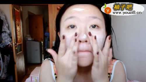 2然后,用双手手指将涂抹在脸部的润肤霜分别均匀地涂开,涂抹时,手指要微按皮肤局部,让脸部皮肤有一种轻微的按摩感,使润肤霜快速得到皮肤的吸收。