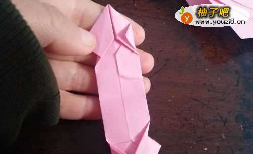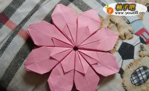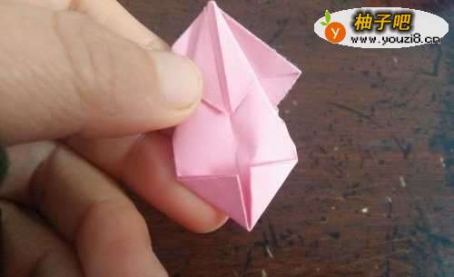 5把下侧的两个角向内折,如图一。然后打开并折到内部,我们把剩下的七个依照上边的步骤操作完成。