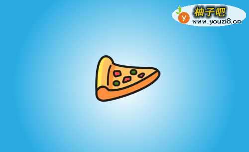 4用中黄色沿着披萨凸起画出边缘,看起来有立体感;
