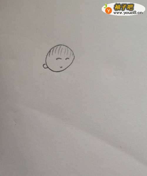 如图,首先画出男生圆圆的头部。