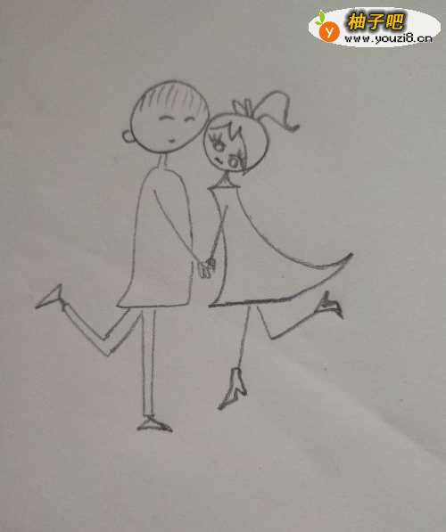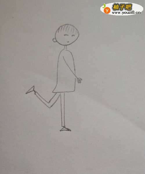 5如图,画出女生的身体和腿脚,穿着一件漂亮的连衣裙和一双高跟鞋。