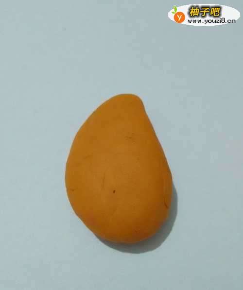 2先用桔色搓一个大大的水滴形状,当作芒果。