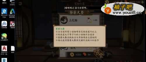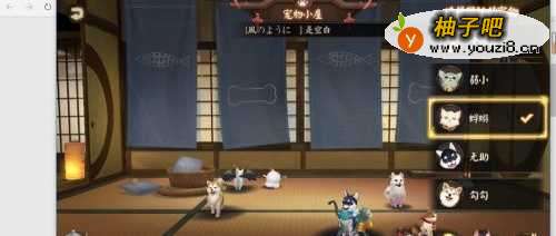 4点击式神可以在最下方选择“猫系式神”或者“犬系式神”,猫系式神只能使用鱼,可以吸引到狸花猫和小白猫,粮可以从“悬赏封印”做任务获得。