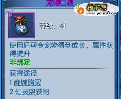 在商城的灵兽栏第一排第二个就是宠物口粮仙友可以花费40元宝购买
