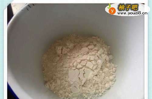 3面粉购扯倒入盆中,少量多次加入开水,搅拌,将面用开水烫成糊糊,搅拌至无颗粒状