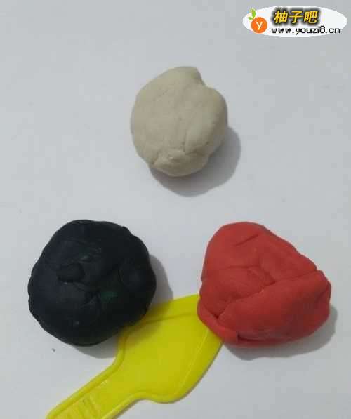做小龙虾,要用到红、白、黑三种颜色和一把小刀。