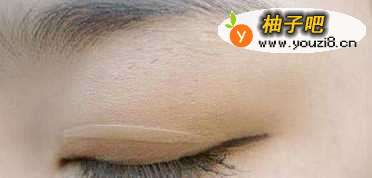 2深色的眼影涂满整个尾部,根据每个人的眼睛形状涂抹面积不同。