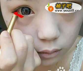 4选择眼线晕染方法画 别画太重否则晕染以后就变成黑眼圈,不用画太多,可以用深色眼影也可以用眼线笔。