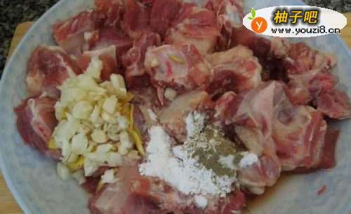 2排骨用、生粉,胡椒粉,生姜,大蒜头,盐,酱油腌制30分钟