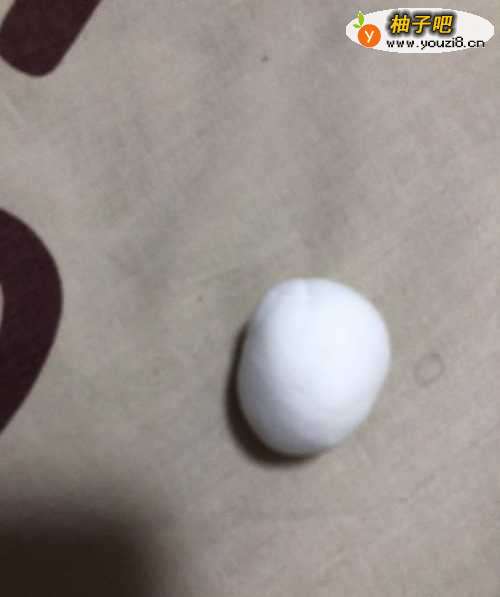 拿出白色的彩泥揉成椭圆形,在拿出红色的彩泥揉成长条,围椭圆形围上一圈。