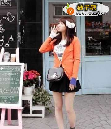 3第二款,让我们一起摆脱冬天的深色系,换上橙色的开衫外套,马上鲜亮十足,而内搭白色的图案T恤,则让整个搭配很有层次感。