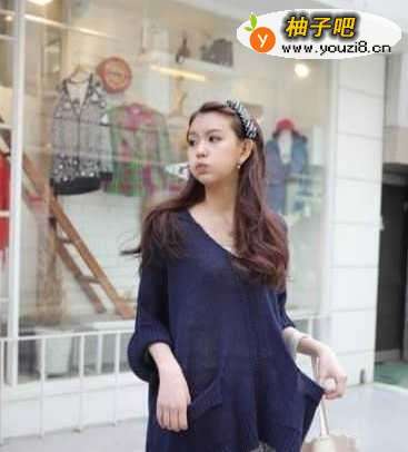 5第三款,宽松的针织蓝外套和碎花短裙一起穿,不仅优雅迷人,还有女人特有的慵懒味道。叠穿的效果也是非常好的。