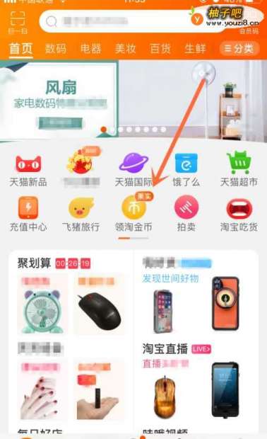 2然后点开首页中的“领淘金币”,如下图所示。