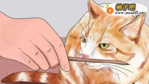 6允许猫咪闻你。和猫咪进行任何接触之前,你可以伸出手,让它嗅你的手指关节,或者伸出沾着你的气味的物品,如帽子、眼睛等。你也可以找一根树枝,在手里搓一会,沾上你的气味,然后把木棍留下。过几天就可以开始喂猫咪了,同时将木棍慢慢地伸出去,透过柳条箱轻轻地摸猫咪的脑袋。再过几天,就奏效了。