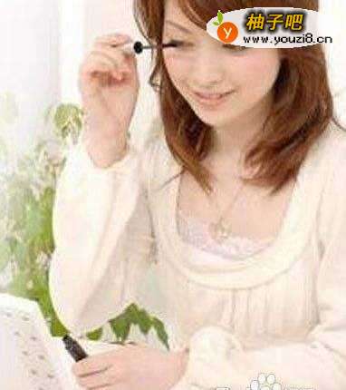 先用睫毛夹把睫毛夹一下,然后从睫毛根部向上涂睫毛膏。