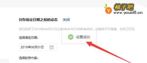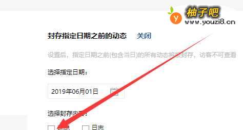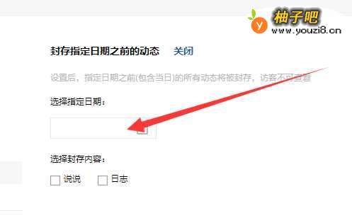 7选择指定日期后在封存内容选项中选择封存的类型,比如要封存“说说”选项并在这项勾选。