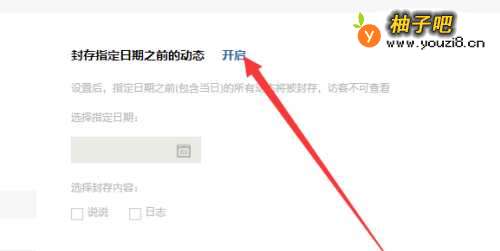 5此时在右边栏中在封存指定日期之前的动态单击“开启”选项。