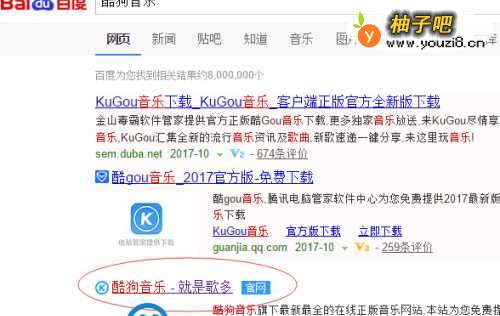 到百度搜索“酷狗音乐”,进入它的网站。