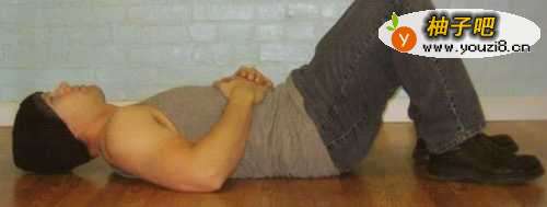 首先,平躺在毯子或床上,双手叠放在腹部,膝盖弯曲。