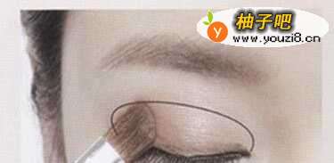 2将棕色眼影在上眼皮尾部再次涂抹加深颜色。