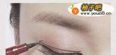 4在上眼皮使用眼线笔画出眼线,但是不要拉长到眼尾。