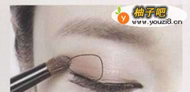 使用眼影刷将棕色的眼影,在上眼皮一半的位置轻轻涂抹一遍。