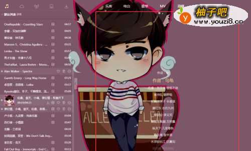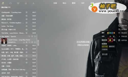 22、把鼠标停靠在酷狗歌词写真窗口的右侧中间边框,会出现下图的选项。