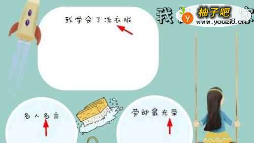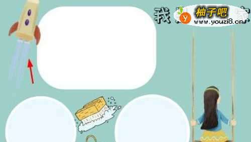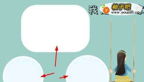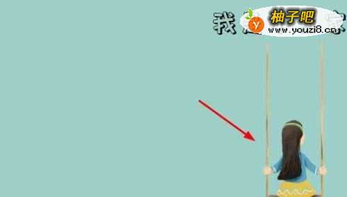 2之后,在主题文字下面画一个荡秋千小女孩,如下图所示