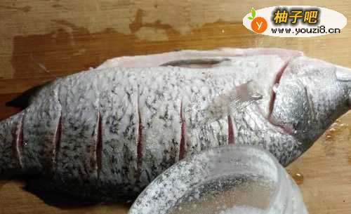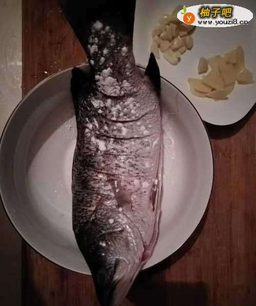 2均匀划开鱼身,撒上食盐,腌制10分钟;