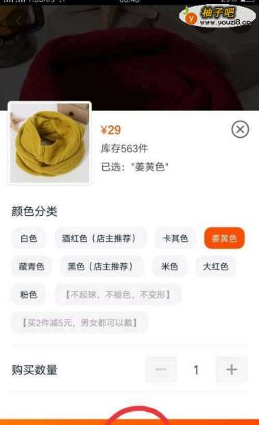 3选择商品一,点击下方加入购物车按钮,挑好颜色等确认,