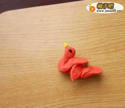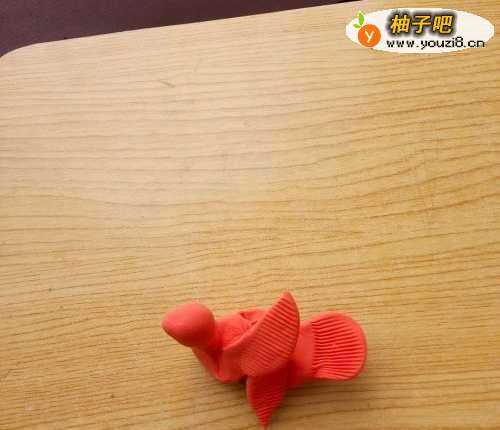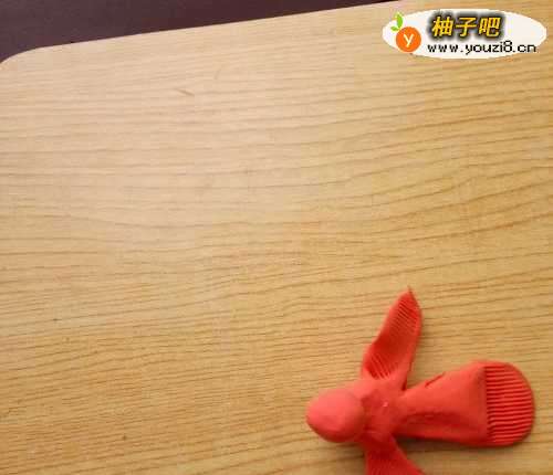 2然后我们把身体的两侧用工具对称的压平做翅膀