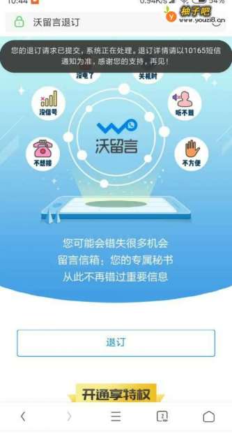 4退订成功将会提示“您的退订请求已提交,系统正在处理,退订详情请以10165短信通知为准,感谢您的支持,再见”的提示,然后分别收到退订成功及关闭呼转设置的提示短信。