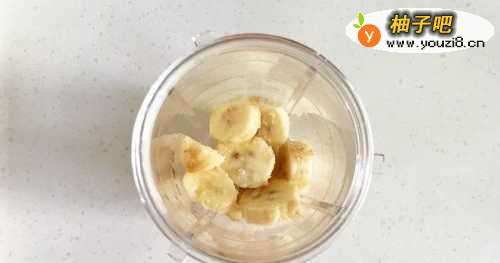 把冻香蕉去皮切块,放入搅拌杯中。