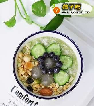 8撒上适量的坚果谷物麦片,最后放上蓝莓。