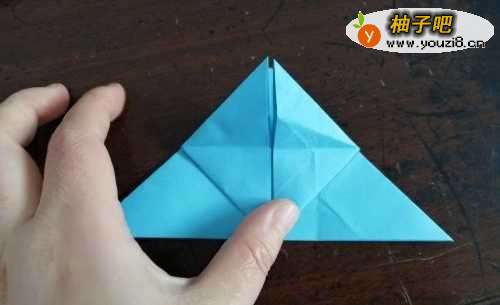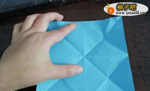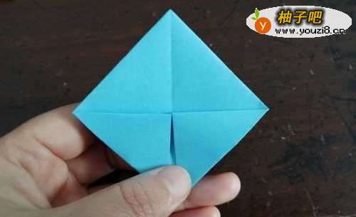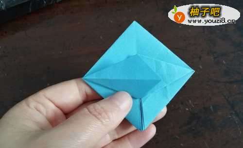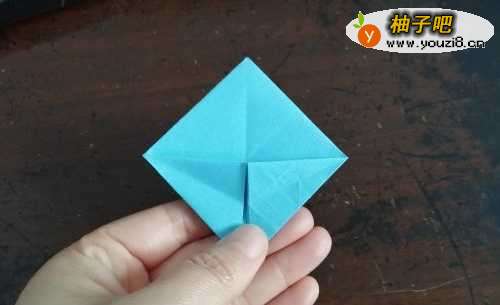5把彩纸翻到背面,按照上边的步骤一样操作,把折好的角插好。