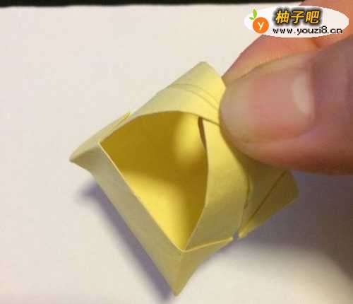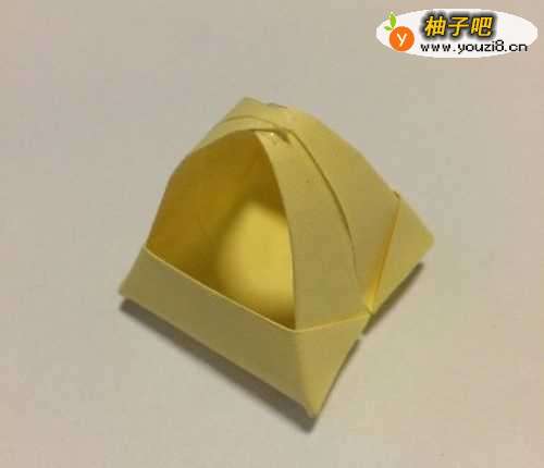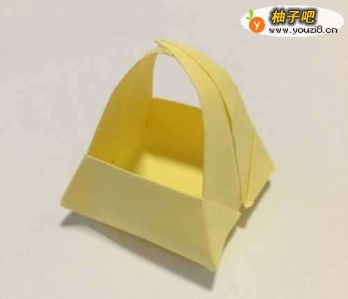 10然后把上面2个尖角粘贴起来,形成提篮。这样小花篮就折好了。