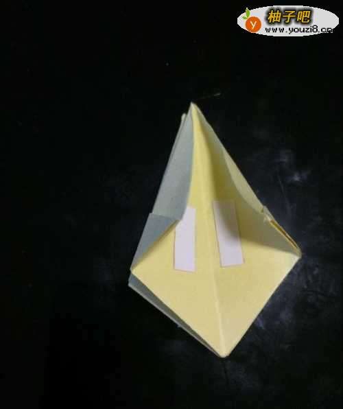 8接下来,再把顶部的上面一片三角与下面部分粘贴起来。