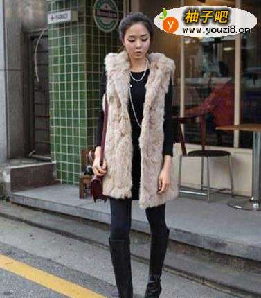 9今年很流行的皮草马甲,搭配打底裤和长靴潮爆!2个颜色就可以那么好看!